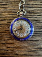 Avant-hierPub au topCatawikiToute la Belgique - Genève - 1960-1969Pendentif montre de poche genève en argent 925 avec chaîne longue, lunette émaillée bleue, boîtier de 20 mm et mouvement à remontage manuel.