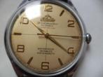 Atlantic worldmaster - super de luxe montre homme à remontage manuel, mouvement eta 1113 (21 rubis), boîtier acier chromé, cadran champagne, verre plexi, bracelet en cuir noir, diamètre 38 mm, épaisseur 10 mm, longueur bracelet 24 cm, années 1960, ét...
