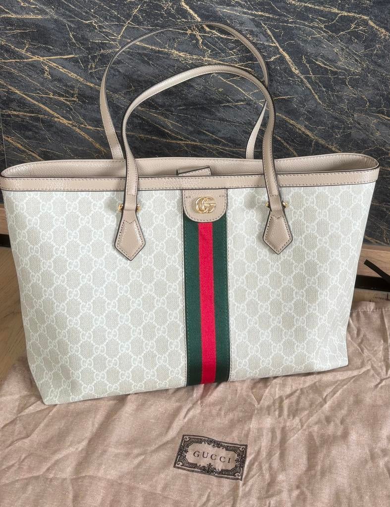 Avant-hierTOUBEAUFrameries - Gucci shopper in wit lederGucci shopper in goede staat afmetingen hoogte 30 cm breedte 30cm diepte 18cm verzending met bpost track & trace 7 euroUtilisé Envoi