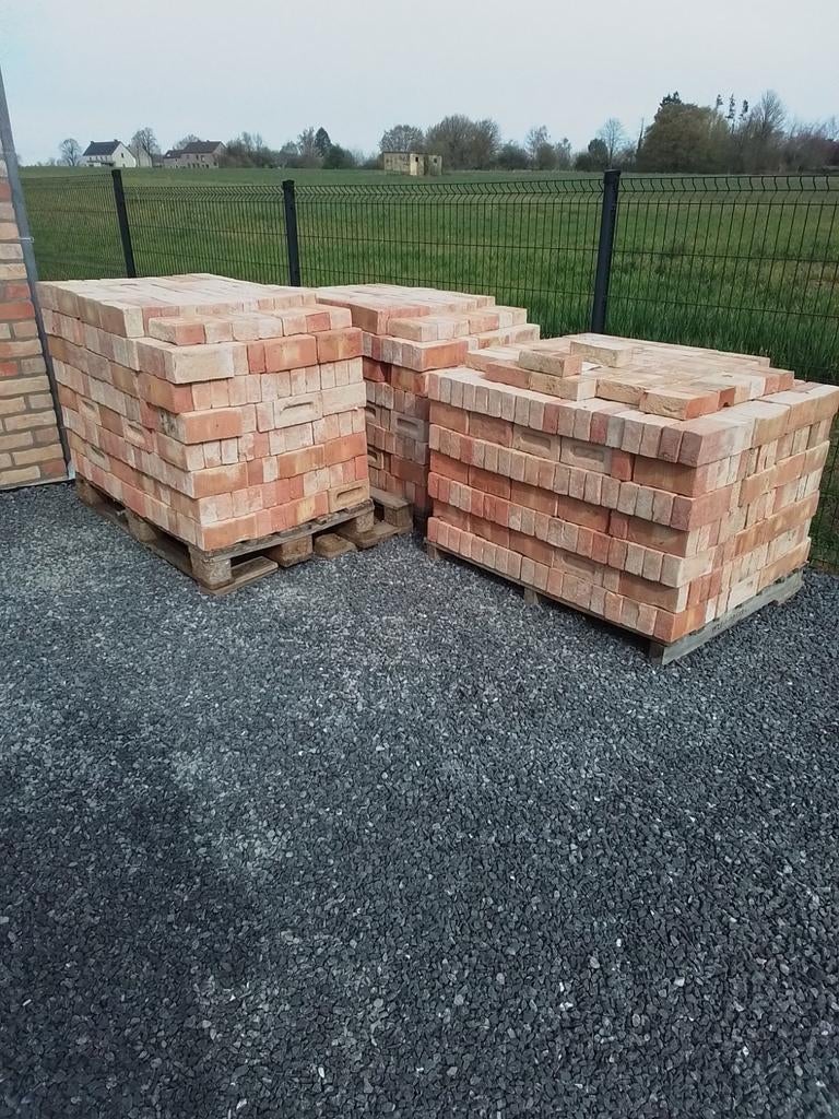 22 mars 26Didier2020Gesves - briquesBriques de four de campagne (nettoyés) longueur +- 210 mm largeur +- 105 mm hauteur +- 65 mm le lot entier contient +- 2500 briques facade sur le photo a été construit avec les mêmes briques 1500euroUtilisé Enlèvement