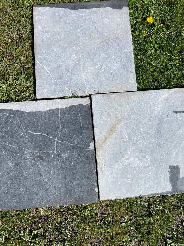 - Carreaux de pierre bleue en pierre naturelle 50/50Carreaux en pierre naturelle en pierre bleue 50/50/2,5 d'épaisseur +/- 40m2 à démonter vous-même à saint-trondComme neuf Enlèvement