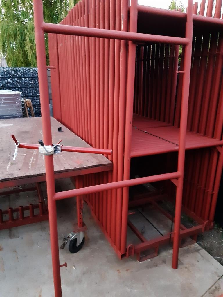 HierAlainBraine-Le-Comte - Echaffaudage maçonnerie 82m214 cadres de 1 m de large et 2 m de haut avec un tube tous les mètres de haut 18 croix étages de 0,3 m sur 2,5 m également disponibles appelez pour obtenir un devis d'autres dimensions de hauteurComme neuf Enlèvement