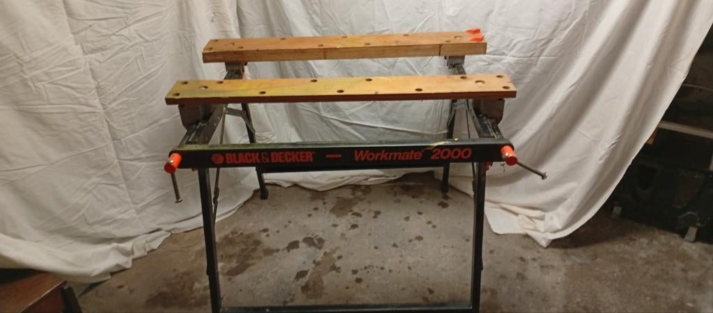 4 août 25TsDHekelgem - Black&Decker Workmate 2000 - très bon état - repliableRevends établi très pratique, solide et fonctionnel. Modèle black et decker workmate 2000 ("la rolls-royce des établis pliants" selon le site travaillerlebois). A été très peu utilisé. Uniqu