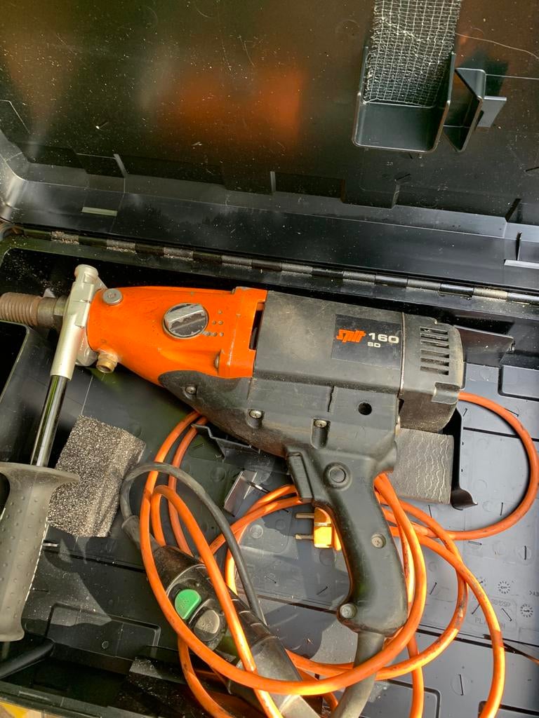 29 août 25miraAntwerpen - Broche SD160 avec support de broche Trix 160 et foretsCarotteuse diamantée spit sd160 avec support spit trix 160 et 2 forets forets diamantés de 75 et 120 mm pour le forage humide et sec prix 1450eComme neuf Enlèvement