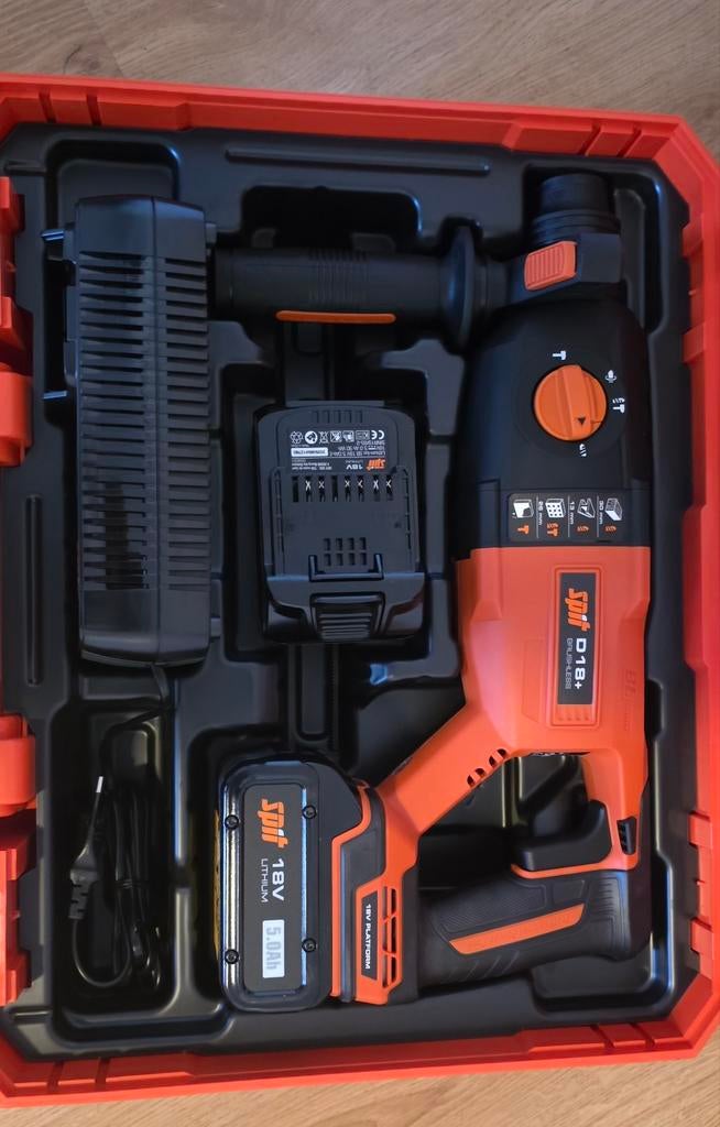 - Nouvelle perceuse à broche D18 +Nouveau marteau combiné spit d18+ accu sds plus 18 volts. Livré dans un étui avec chargeur rapide et 2 batteries 18v 5ahEnlèvement