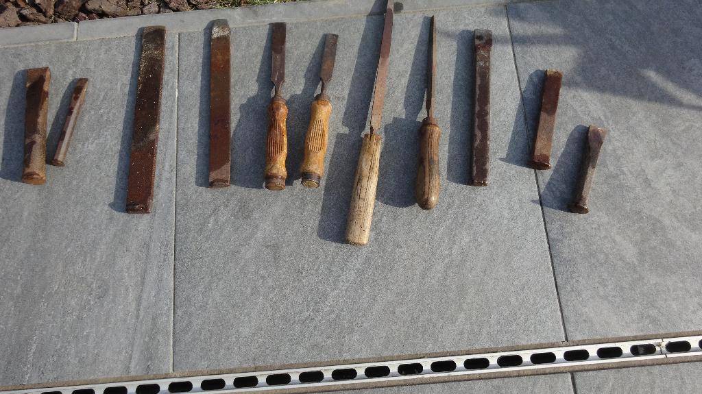 - Ciseaux à pierre - ciseaux à bois2 ciseaux à bois 7 ciseaux à pierre (grands et petits) 2 limes à métaux en état d'usage. Vendu en colis frais de port au poidsUtilisé Enlèvement ou Envoi