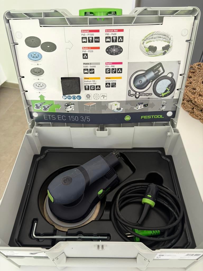 28 mars 26benOostrozebeke - PONCEUSE FESTOOL ETSC 125Ponceuse à batterie festool en superbe état ! Je suis un maniaque les photos en montre la preuve . Inclu : la ponceuse avec son sac un accu 3.1 Lion le chargeur et le systaîner tout comme sur là photoComme neuf Enlèvement