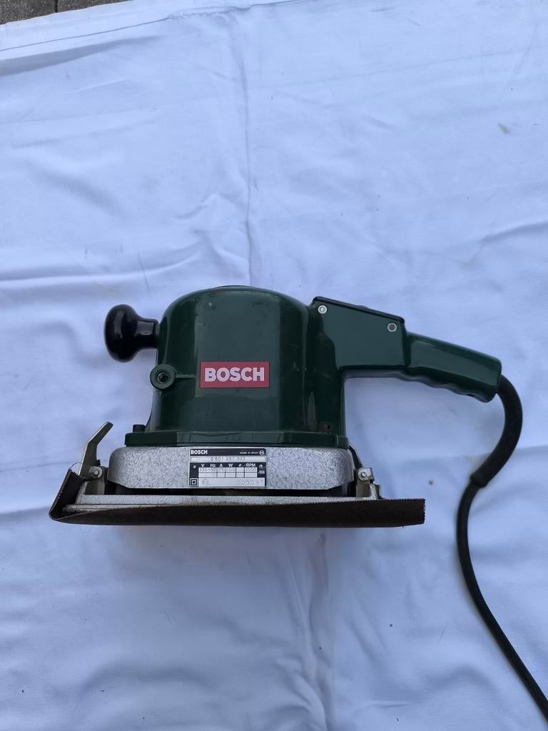5 avr. 26Pierre RobberechtHamme - Bosch vlakschuurmachine PSS 240 AEBosch vlakschuurmachine, in bijhorend koffertje, 220 v, 240 watt & max. 27.000 Toeren. Het schuurblad is 93 x 230 mm, tot. Oppervlakte 167cm², toestel beschikt tevens over een elektronische toerenEnlèvement
