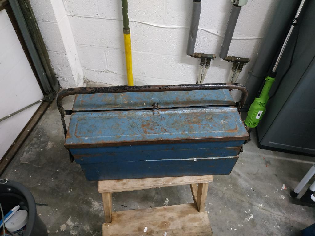 HiersteveOugree - Boite à outil vintage en métalBoite à outils solide et ancienne à vendre. Style vintage et industriel. Le boîtier a été utilisé et possède la rouille et la patine nécessaires, ce qui lui confère un caractère unique. Idéal pour ranEnlèvement