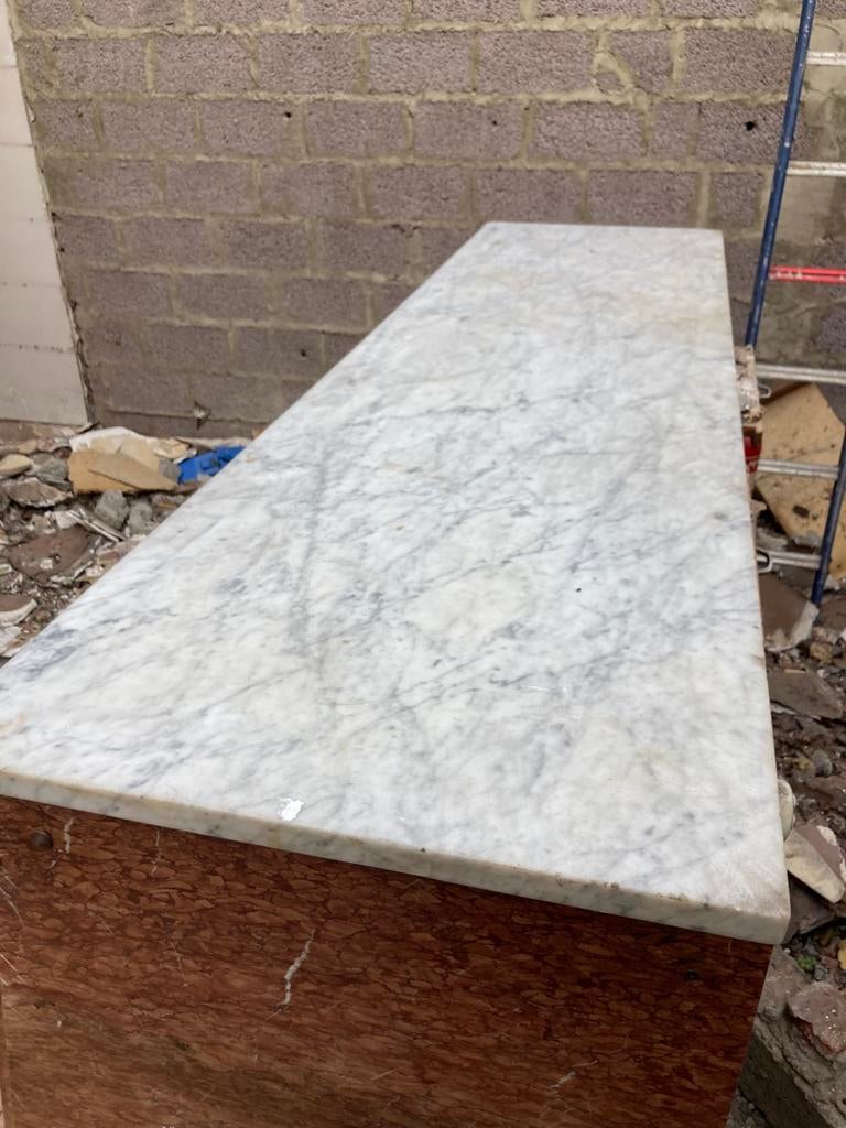 19 juin 25snuffelhoekjeHeule - Marmerenblad B 79 x L 144,5 x D 2cmMooi massief marmeren tablet met warme beige/roze aders (uniek patroon). Afmetingen: 144,5 x 79 x 2 cm materiaal: massief marmer (zeer zwaar!) Kleur: licht met natuurlijke aders zeer stevig en duurzaaEnlèvement