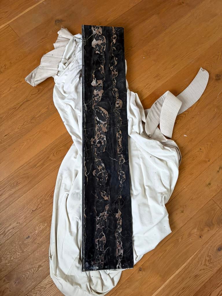 Avant-hierHildaItegem - Tablet in marmerTablet in marmer nog in mooie staat . Met 1 rechte zijde en 1 afgeronde zijde . Afmeting :lengte 75cm op 20cm breedte . Dikte 2cmEnlèvement