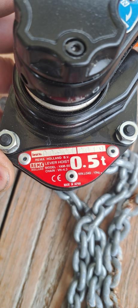 - Palan à chaîne manuel (palan à cliquet) | Rema HollandPalan manuel à chaîne (palan à cliquet) de rema holland, modèle yam-50. Capacité de charge : la capacité de charge maximale est de 0,5 tonne (500 kg). Charge minimale : l'appareil nécessite une chEnlèvement