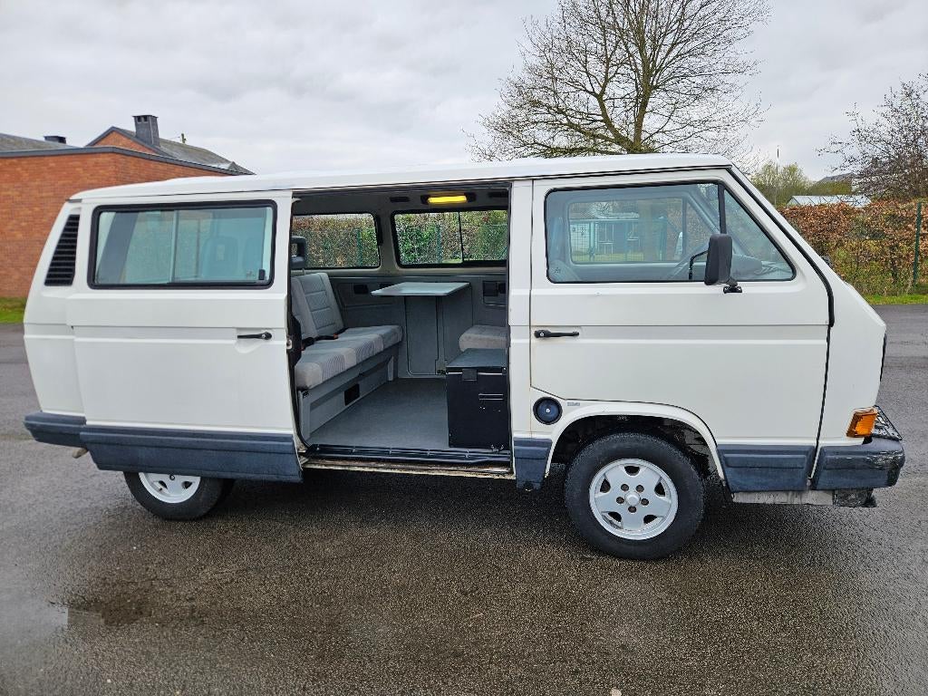 Avant-hierWBRGembloux - VW T3 multivan BluestarVehicule unique ! Multivan 1990 - 7 places avec tente de toit westfalia ( 2 lits doubles avec la banquette du bas). Moteur 1,9 tdi. Direction assistée attache remorque barre de toit casquette le bas d