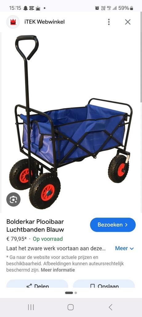 15 avr. 26AlexandraKessel-Lo - BolderkarBolderkar, stevig, handig opvouwbaar, afwasbaar, zo goed als nieuw. Enkel gebruikt voor de kleinkinderen. Info afmeting, staat bij de foto’sComme neuf Enlèvement