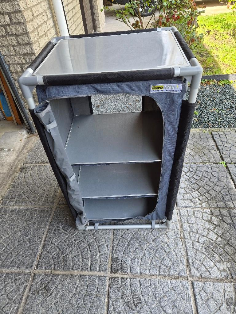 Aujourd'huiHAK AutoLendelede - Armoire de camping Nova Lucera EurotrailArmoire de camping pliable super pratique nova lucera d'eurotrail en excellent état. À Peine utilisé et avec étui en parfait état. Version beige avec étagère supérieure beige et étagères intégréesComme neuf Enlèvement