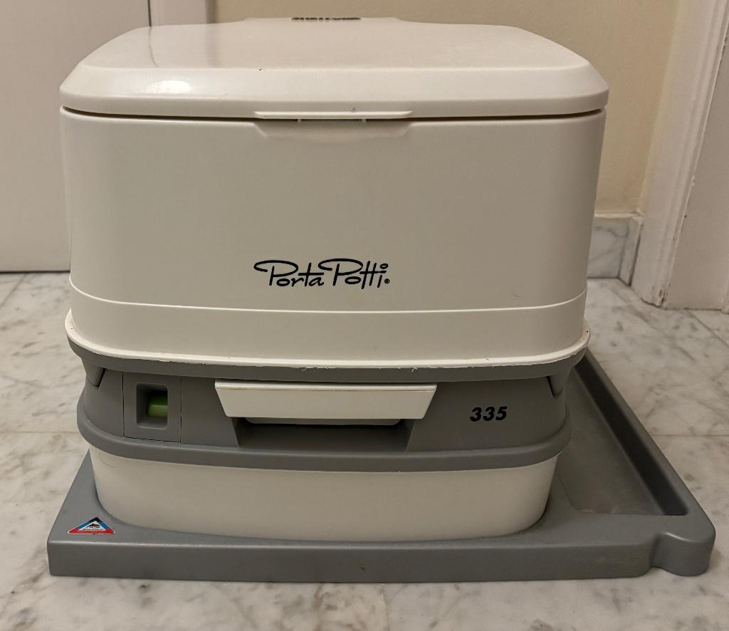 Avant-hierStalloneHornu - Porta Potti 335 pour VW California + produitsWc chimique compact avec plaque de rangement pour le meuble de cuisine du vw california (t5/t6/t6.1). Peu utilisé, désinfecté. 1,5 Litre de aqua kem green 0,75 litre de aqua rinse plus 3 rouleaux papi