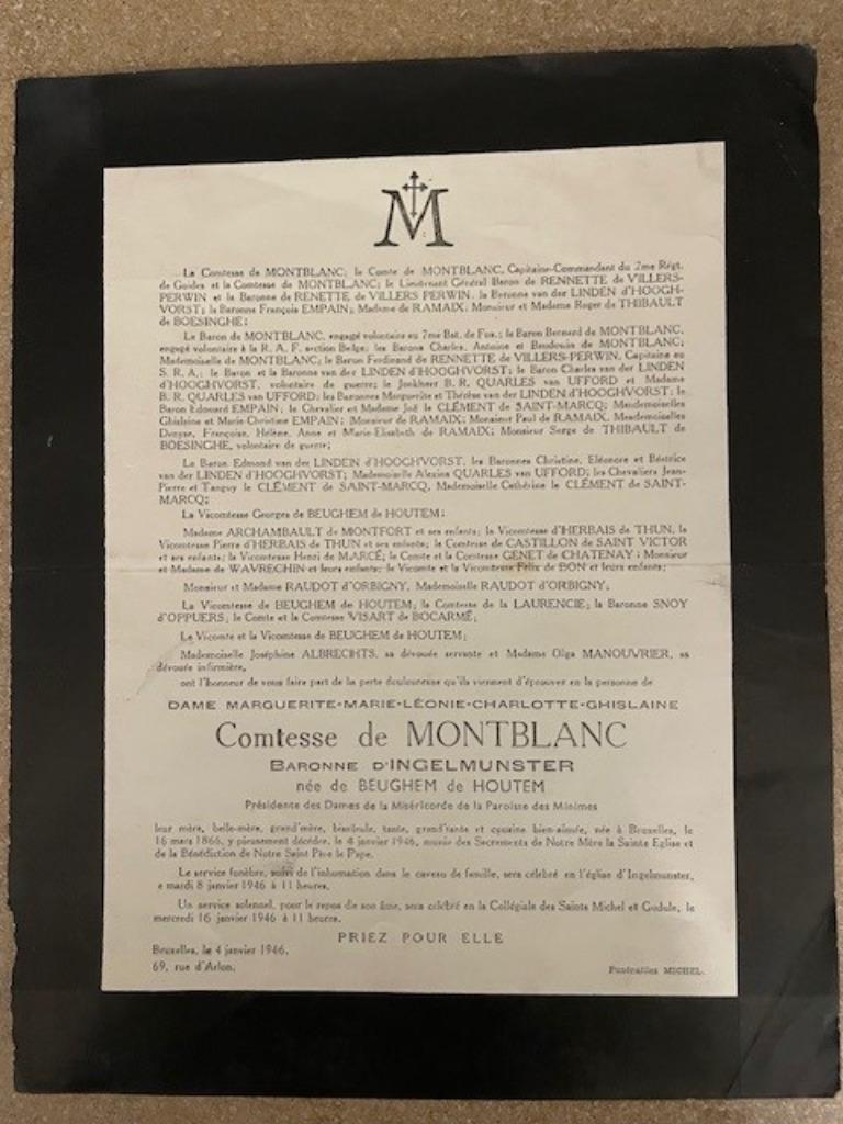 Avant-hierGlacePuurs - 2 RK Baron et Baronne d'Ingelmunster, Comte de MONTBLANC2 cartes funéraires : baron et baronne van ingelmunster, comte et comtesse de montblancEnlèvement ou Envoi