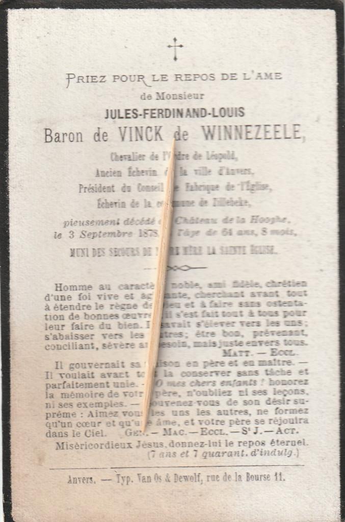 26 mai 25MarcLubbeek - ADEL-BARON Pierre DE VINCK ANTWERPEN 1889 est décédé à YPREAdel-baron pierre de vinck° antwerpen 1889 est décédé dans un accident à ypres le 18/9/1947, mari margaret -isobel -reid loudonEnlèvement ou Envoi