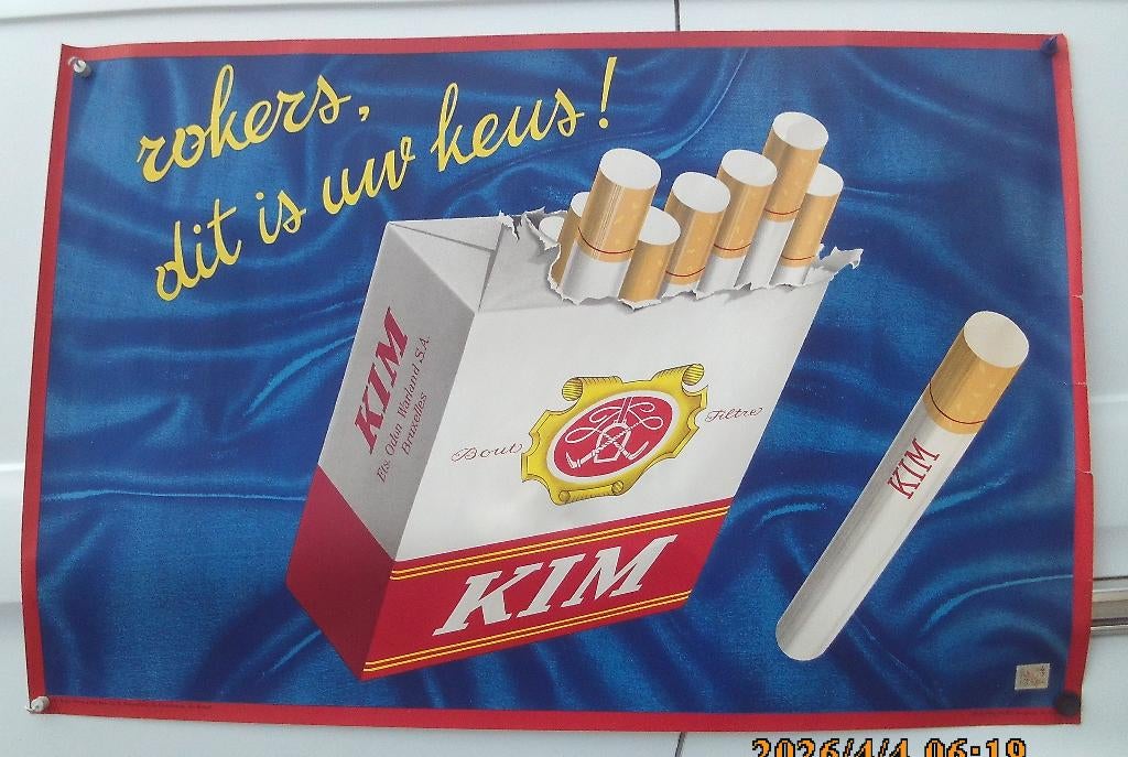 24 nov. 24RIGOMechelen-Aan-De-Maas - KIM Rokers,Dit is uw Keus !Affiche pour la cigarette kim fabriquée par odon warland format 80x120 année 1959 petite déchirure sur le bord droit ) envoi sous tubeComme neuf Enlèvement ou Envoi