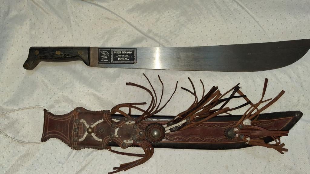 Avant-hierMarcWichelen - machetteMachette van de jaren 80 van colombia 73 cm lang in mooie hoes wie deze kan gebruiken doe mij een bod 0496.29.29.29Enlèvement ou Envoi