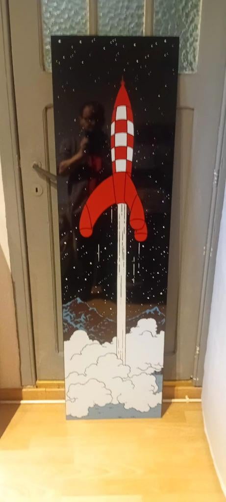 - plaque tintin fusée lunaire hergé 40 X 150 cmPlaque fusée dimension 40 x 150 cm etat tres tres bon pas de marque ni d estampille à l arrière à venir chercher sur place (région du condroz - 15 km de ciney)Comme neuf Enlèvement