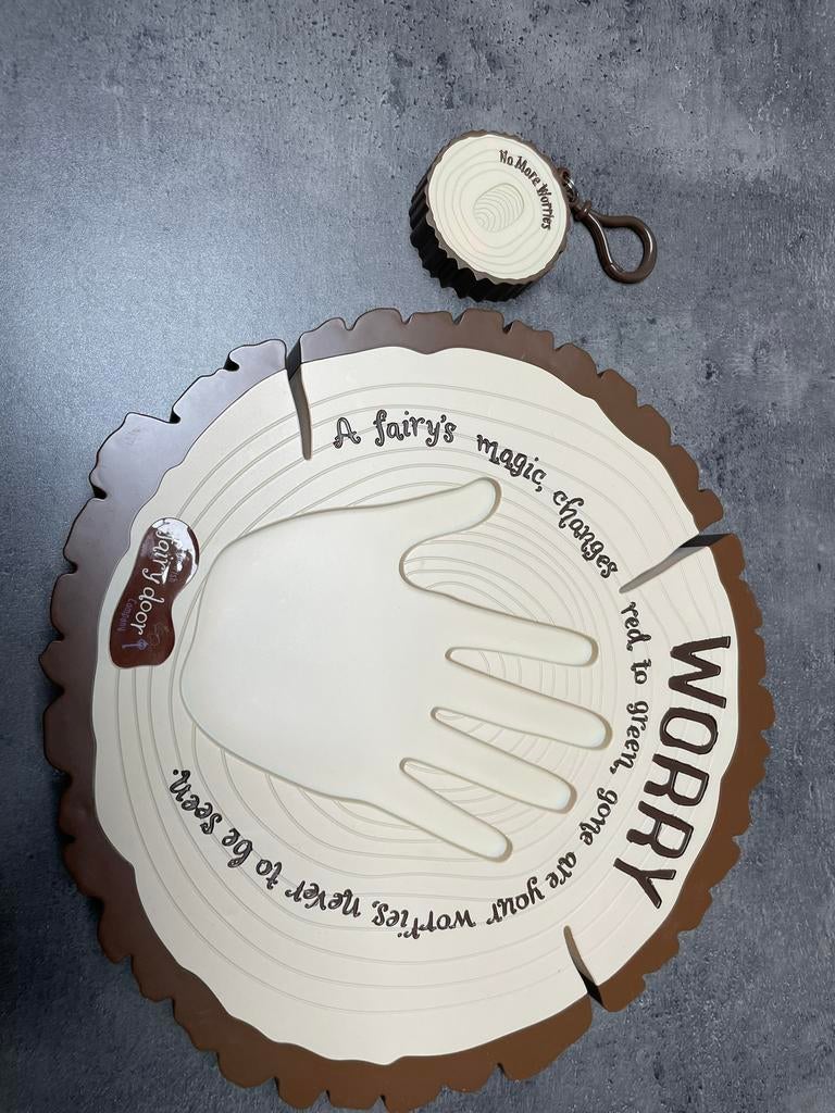 7 mars 26A.m.Hamont - Zorgenstronl en sleutelhanger.Werking: de tekst op het bord luidt: "a fairy's magic, changes red to green, gone are your worries, never to be seen" (de magie van een fee, verandert rood in groen, je zorgen zijn verdwEnlèvement ou Envoi