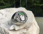 Bague legion etrangere green berets skull en acier chirurgical hypoallergénique, unisexe, taille eu 69 (us 12½), poids 25 g, avec une grande tête de mort au centre remplie d’émail céramique, en parfait état.