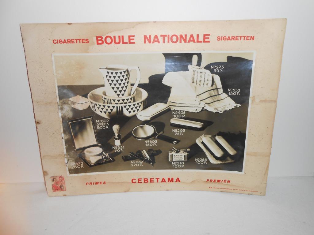 8 oct. 25Pub au topJimmy van ZeelstTurnhout - Panneau publicitaire à cigarettes Boule NationalePanneau d'affichage en carton de la marque de cigarettes boule nationale avec un timbre fiscal. Il date des années 1930, il a donc presque 100 ans ! Bon état général avec les signes habituels de lUtilisé Enlèvement ou Envoi