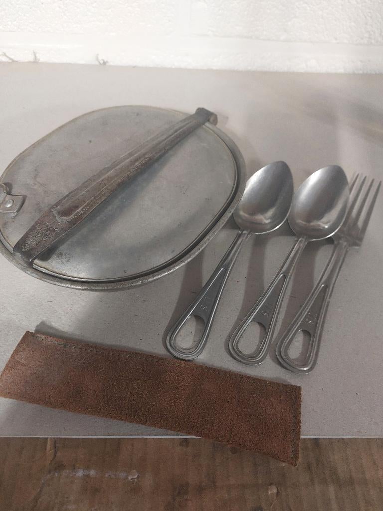 Avant-hierPeiperBastogne + Partie De Longchamps Et SibretGourde US WW2Enlèvement ou EnvoiGourde us. House toute bonne ww2 mais sans marquage visible, belle teinte od3. Gourde vollrath 43 avec légère gravure (chaînette à règlé). Pas de quart⚠️ voir photosBastogne + Partie De Longchamps Et SibretAvant-hier - Lot gamelle /gourde allemande ww2Lot gamelle /gourde allemande ww2 etat terrain, traces d'usure, daté 1938(gourde) et 1937(gamelle) pièce venant des ardennes belgeEnlèvement ou Envoi