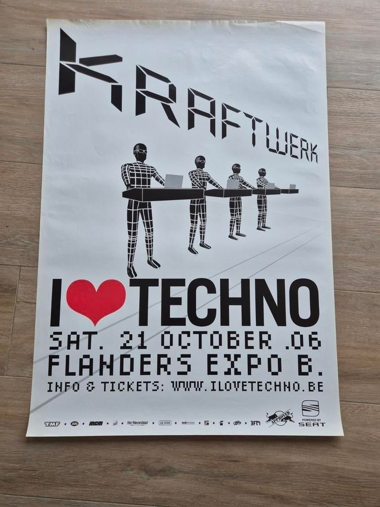 - Affiche du concert Kraftwerk I Love TechnoAffiche originale en bon état. Si vous recherchez d'autres affiches, faites-le moi savoir ! J'ai encore beaucoup de techno et d'autres trucs.Neuf Enlèvement ou Envoi