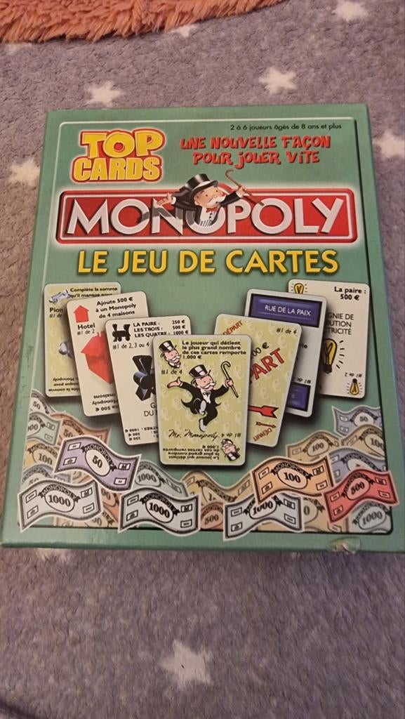- MonopolyJeu de cartes du monopoly . Contient les cartes de monopoly et les liasses de billets . Chouette jeu du monopoly sous la forme de cartes .Enlèvement