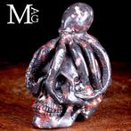 Oceano di misticismo: het octopus op het schedel – redmaculated jasper sculptuur is een zwarte jaspis-sculptuur met rode en witte vlekken uit zuid-afrika, met afmetingen 160 × 130 × 100 mm en een gewi