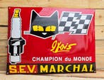 - Emaille bord S.E.V. Marchal BougieEen prachtig emaille reclamebord van s.e.v. Marchal bougies. Het franse merk s.e.v. Marchal is met name bekend geworden door de autosport, waarbij hun producten waaronder verlichtingssytemen bijdroegeVerzenden