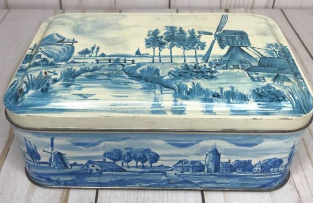 21 janv. 23Pub au topjimmyvanzeelstTurnhout - Boîte à biscuits PatriaBoîte à biscuits rectangulaire patria avec représentations bleu de delft de moulin à vent et paysage de poldersComme neuf Enlèvement ou Envoi