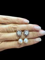 Pendentif chunky en argent 925 uni sexe, avec sunstone et moonstone naturels dans un entourage perlé, pierre principale environ 28 mm, rallonge du pendentif 5,8 cm, poids total 21,40 g, en excellent é