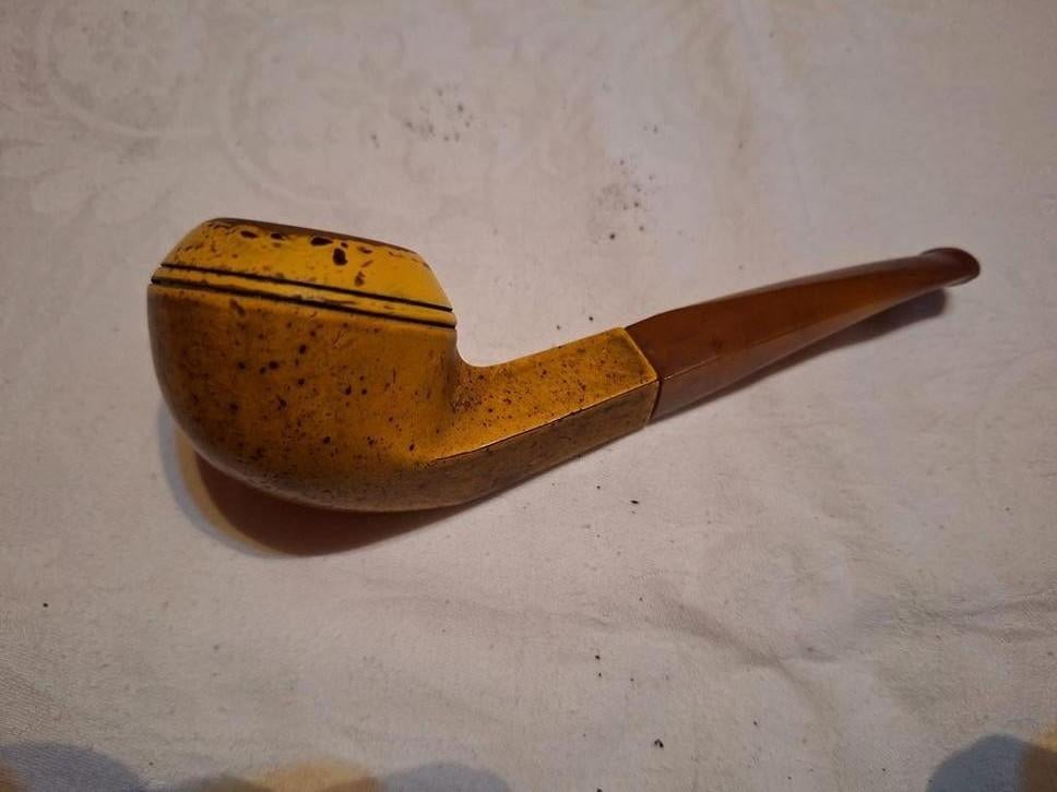 - 3 pipes anciennes en écume de mer avec embout en ambre3 pipes anciennes en écume de mer avec embouts en ambre dans le support d'origine parfait état vendu ensemble peut être envoyéComme neuf Enlèvement
