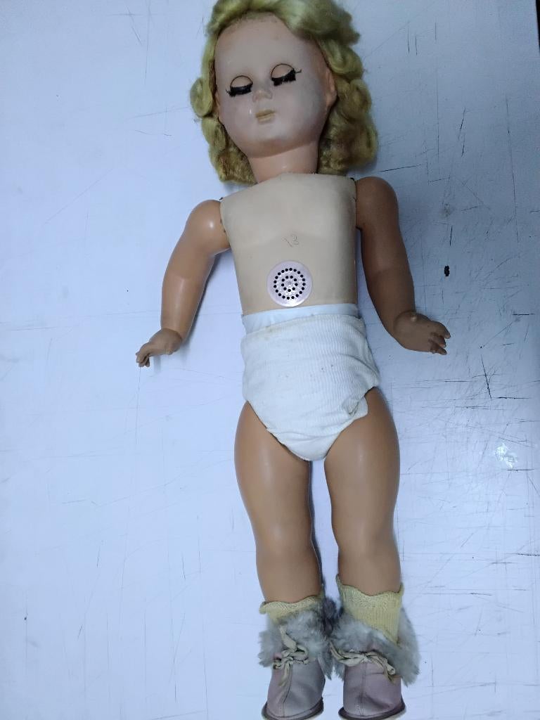 8 févr. 26AnnieDilbeek - Poupée anciennePoupée blonde en rhodoid, 40cm. Sa bouche est ouverte laissant apparaitre deux dents, yeux dormeurs bleus. Le système parleur ne fonctionne plus. Elle date des années 1950. Bon état.Enlèvement ou Envoi