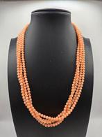 Natuurlijke roze mediterrane koraal ketting met vier evenlange draden van ske drinken 4 mm bollen, 46 cm lang in rustpositie en een zilveren sluiting met een centrale koraalkabochon. Prestigieus vierstrengs collier in torchon-stijl of lineair meerdra...