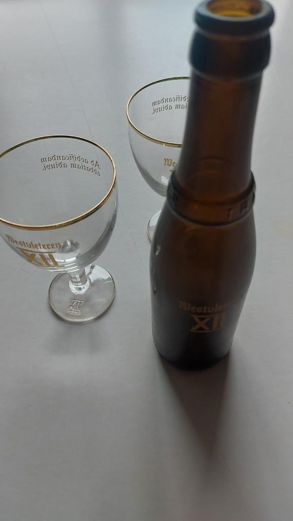 - Verres de dégustation Westvleteren + bouteille2 verres et une bouteille qui faisaient partie de la boîte modulaire limitée distribuée par colruyt en 2011. Les verres de dégustation uniques portent une inscription imprimée en or. Ils ont été débloEnlèvement