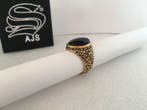 28 mai 25biekeBornem - Noble Maçonnique au style vintage, cristal noir, acierBague signet unisexe en style maçonnique vintage avec patine noire, comprenant un grand cristal noir ovale (13x18 mm) et une inscription latine, en acier inoxydable 316l hypoallergénique plaqué or 24