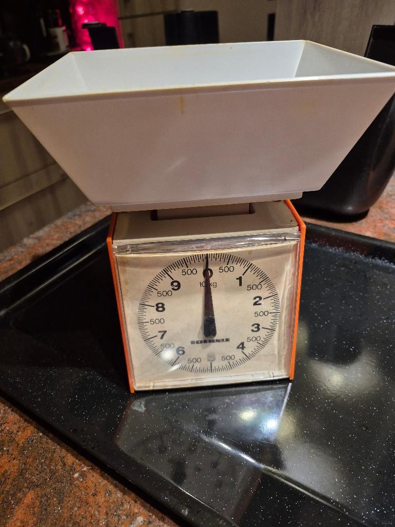 16 juin 22kevVeurne - balance vintage de couleur orange max 12 kg année 70Objet vintage avec système de blocage et de pesage des années 1970. La couleur est bien préservée. J’ai pesé un objet pour voir si elle fonctionnait (test réussi) un nettoyage s’impose avant utilisatiComme neuf Enlèvement ou Envoi
