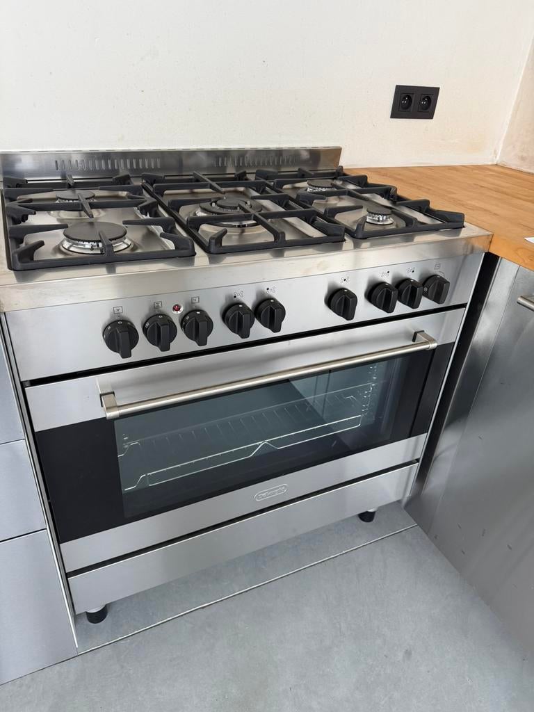 27 mars 26Jean-Marc DBWandre - Gazinière De’Longhi 5 feux avec double four-90 cm – bon étatGazinière de’longhi 2016, en bon état et fonctionnelle. 5 Feux au gaz (le feu du milieu ne fait pas une flamme correcte), grand four principal (le plus abîmé mais fonctionnel), petit four latéral et rEnlèvement