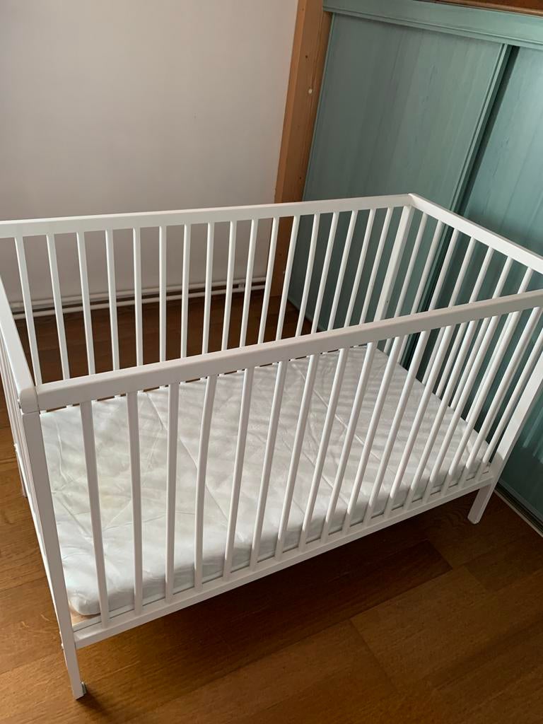 15 mars 26marieWoluwe-Saint-Lambert - Lit bébé IKEA blanc 60x120 cm SUNDVIK avec matelas.Lit bébé état neuf vendu avec matelas mémoire de forme prémaman.Comme neuf Enlèvement