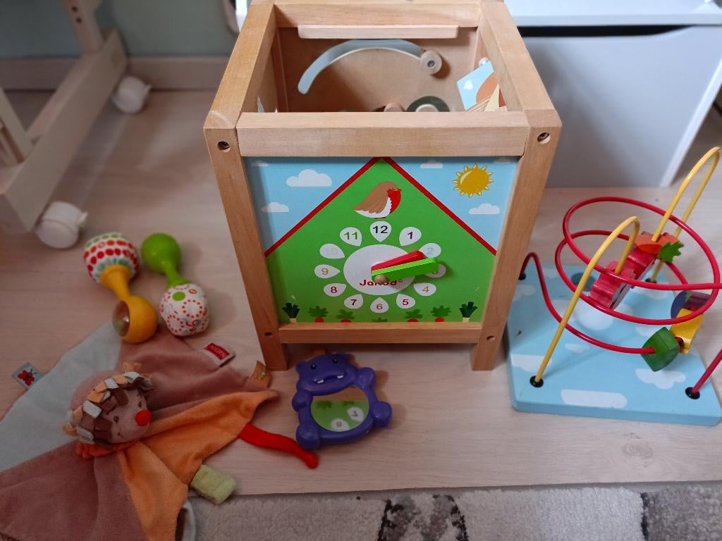 26 janv. 26NinnekeOlen - Circuit automobile de Clairbois avec voituresConvient à partir de 18 mois circuit à 4 voitures bleu, rouge, vert, jaune trappes de rangement pour voitures 4 poupées, rondes, carrées,... Système de rotation et les poupées tombent tout simplement.Comme neuf Enlèvement