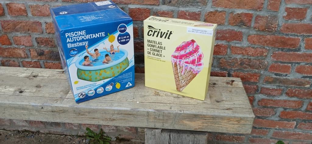 - Ensemble piscine et bouée gonflableEnsemble piscine et bouée gonflable neuf dans sont emballage les dimensions sont sur les photo prix 20 euroEnlèvement
