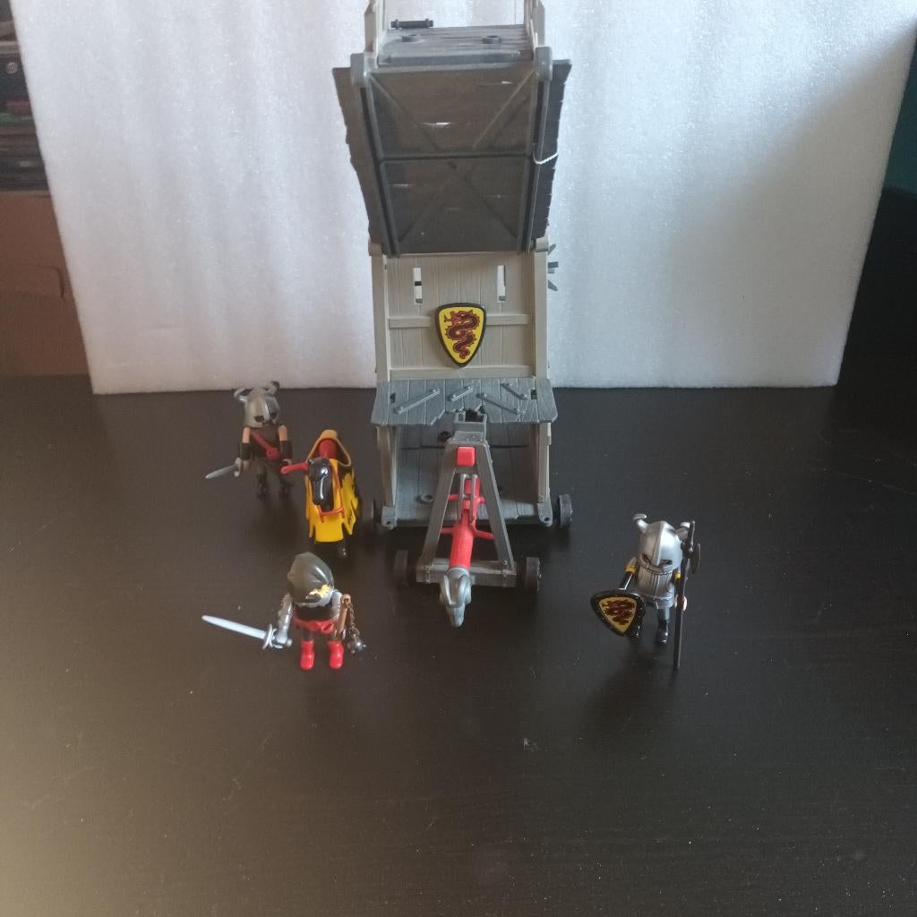 - playmobil 4441 tour d'assaut et ses soldatsPlaymobil 4441 tour d'assaut et ses soldats quasiment complet : il ne manque que le mat pour le drapeau et la mors pour le cheval. La tour d'assaut fonctionne (elle roule et le pont d'assaUtilisé Enlèvement ou Envoi