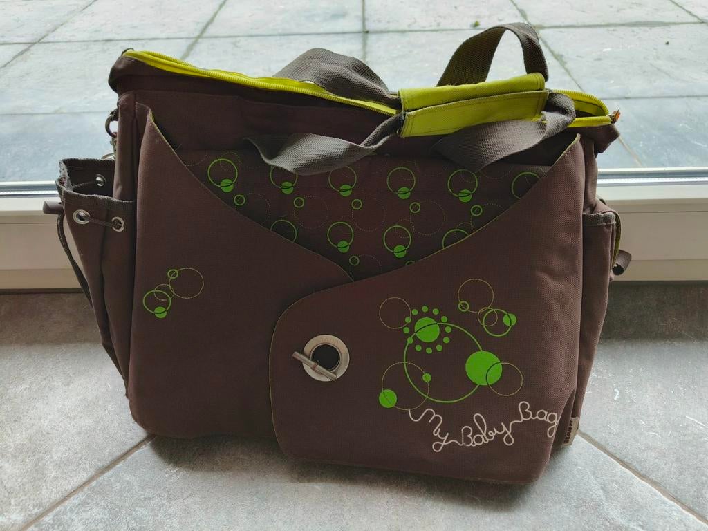26 mars 26Shanna LimbourgZichem - Sac à langer marron Isoki avec accessoiresSac à langer isoki pratique, de couleur marron, avec fermetures éclair et tissu imperméable. Deux compartiments principaux et une petite poche avant. Bandoulière réglable. Avec accessoires : - porte-mUtilisé Enlèvement