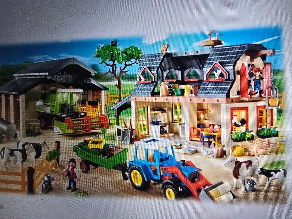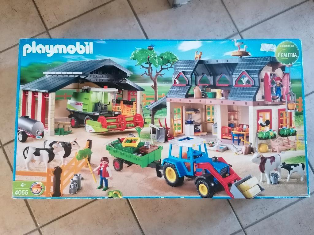 - playmobil 4055 mega boerderij setPlaymobil 4055 mega boerderij set met handleiding grote boerderij set met heel wat attributen en diertjes. Hier werd veel mee gespeeld. De set is niet meer compleet: belangrijke zaken die ontbreken ziUtilisé Enlèvement