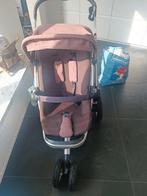 Poussette avec protection pluie, chassis poussette, sur pneus gonflables,avec possibilité de retirer les roues très facilement pour un gain de place dans le coffre de la voiture, très maniable et faci
