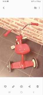 Tricycle pour enfants des années 1970 en bon état de fonctionnement. Couleur rouge et blanc.